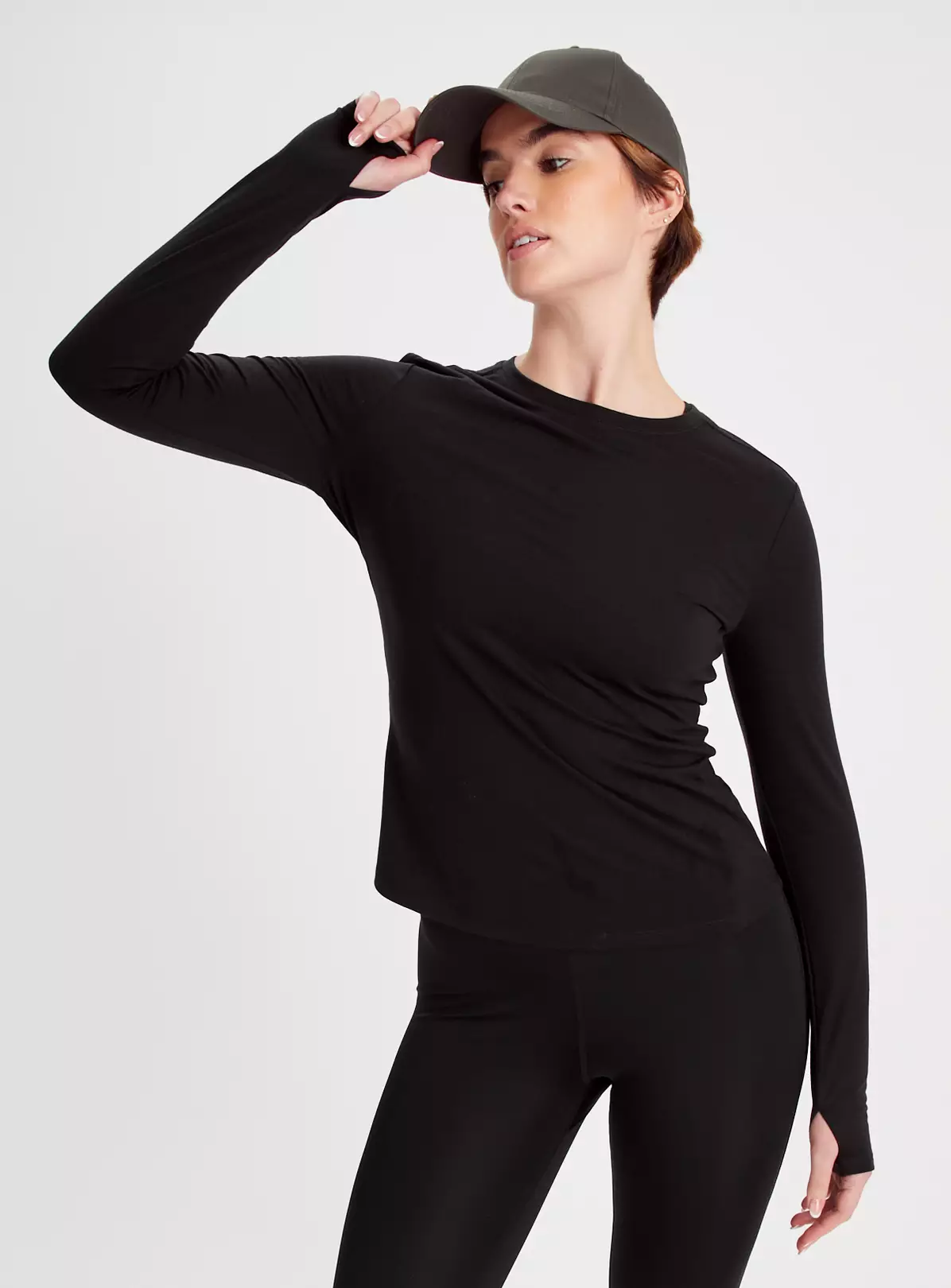 Refresh your winter wardrobe with our staple Active long sleeve top. It features thumbhole details, perfect for adding a sport-style vibe to your outfits. Team it with a pair of black leggings and throw over a trench coat for the ultimate athleisure look.
