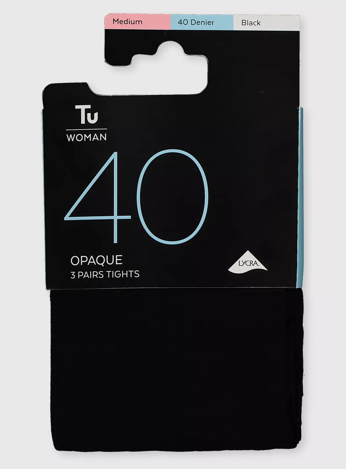 Stock up on the essentials with this great value three pack of black tights. Crafted in a 40 denier opaque style, they’re the perfect finishing touch to any outfit this autumn and winter.
