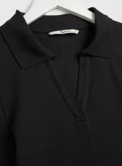 This long sleeve ribbed top has a retro open collar, and looks great with pretty much anything! In a skinny fit, it looks fab with bright trousers, ready for your next girly lunch. Available in other colours.