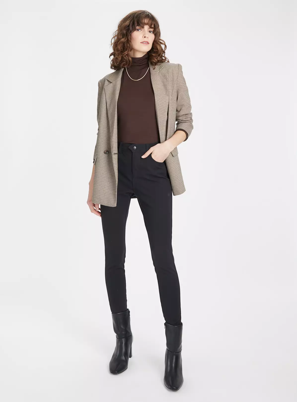 Smarten up your outfits with our staple black treggings. In a trouser style, they have added stretch for maximum comfort for when you’re out and about. Style with a white poplin shirt and loafers for a chic look..