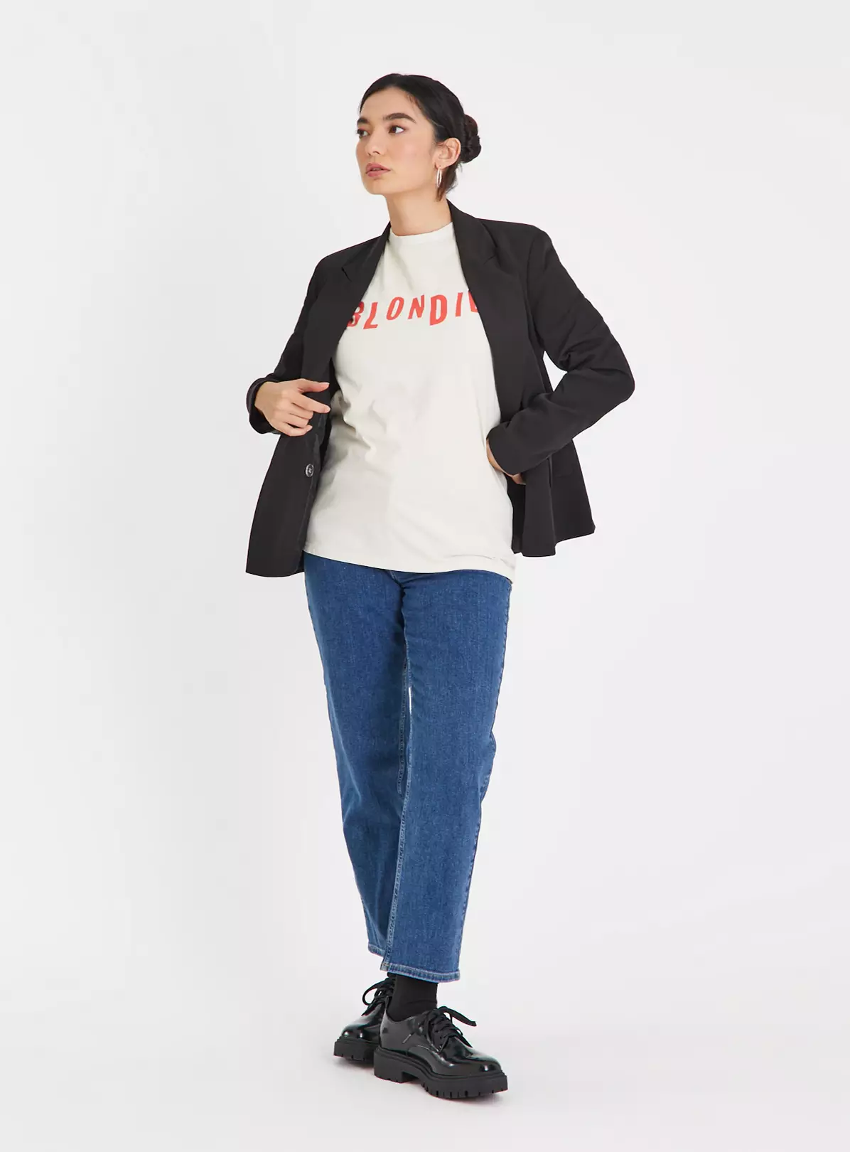 Add a rock twist to your t-shirt collection with our white Blondie tee! It comes in a cool oversized fit, perfect for pairing with denim. With a Blondie graphic print on the front, it’s an effortlessly chic piece for this season.