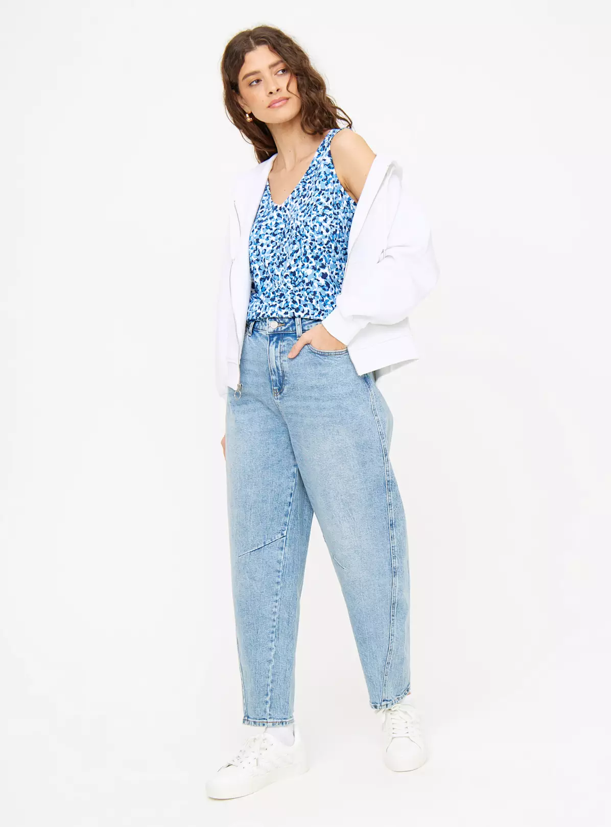 Perfect for summer holidays and sunsoaked getaways, our vest top comes in a blue animal print. In a lightweight fabric, it has a flattering v neckline. An essential for this season!