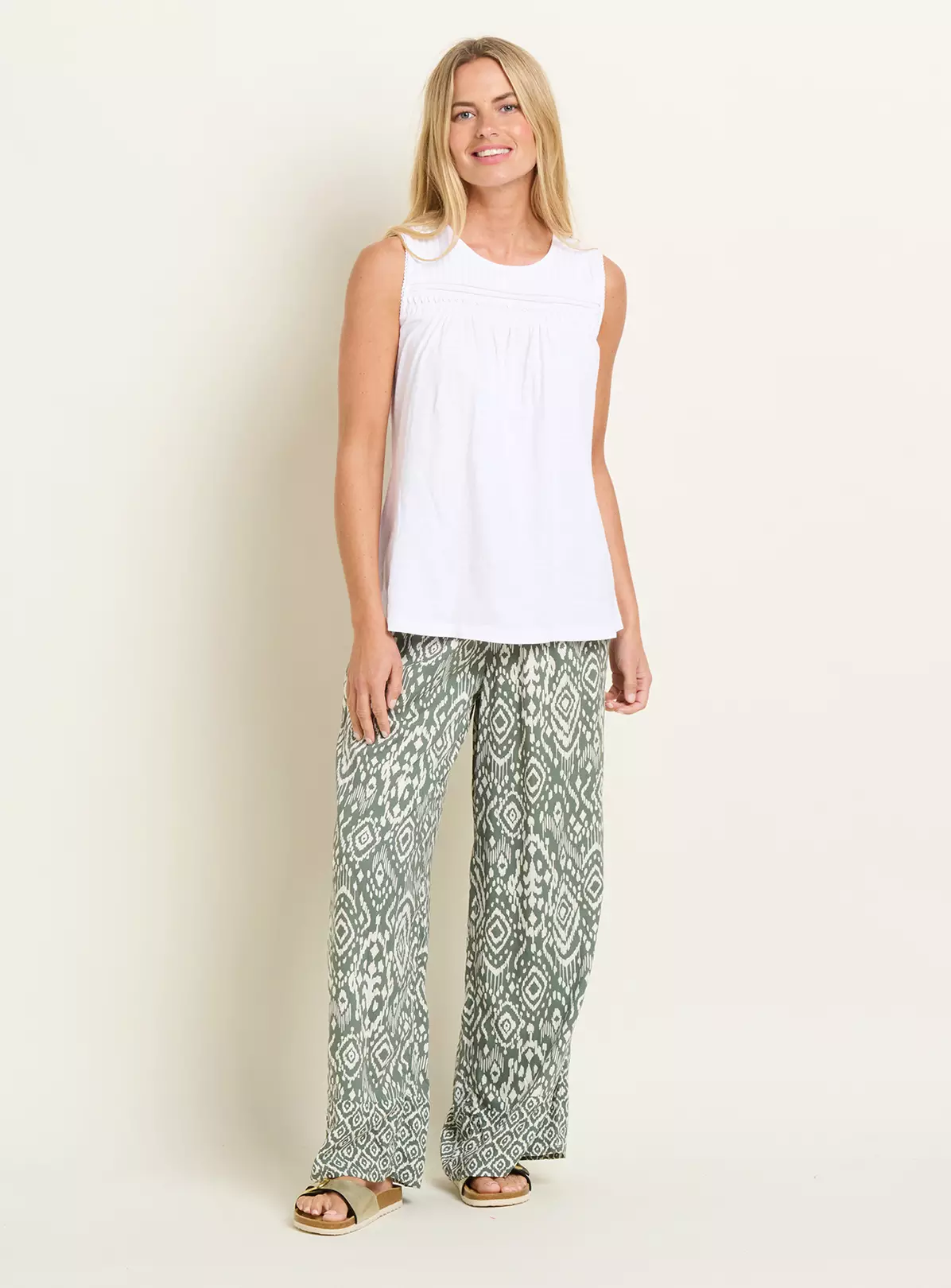 Elevate your everyday summer wardrobe with the Brakeburn Hazel vest. This women’s white, pleated regular fit top is subtle and comfortable, with a flattering silhouette. The pintuck and lace detail adds interest that can be dressed up or down. Wear on its own or layered under a lightweight summer jacket or knit.