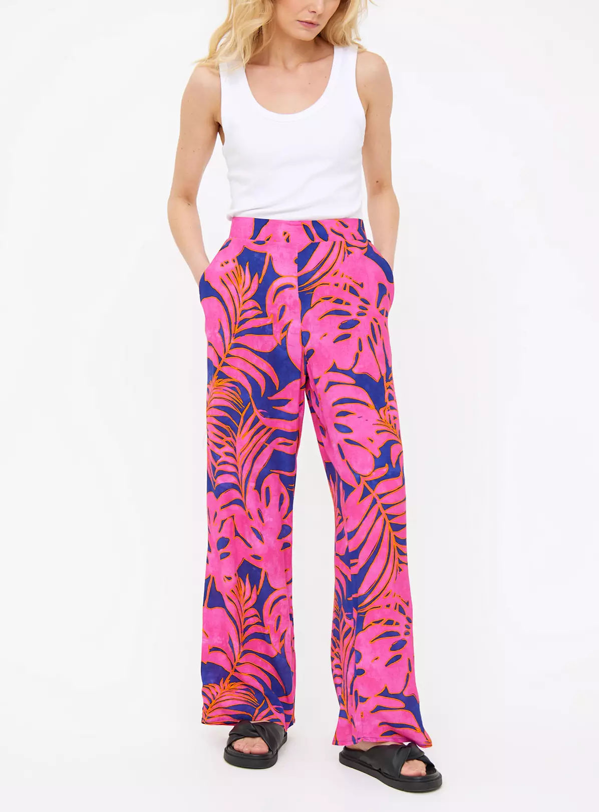 In a gorgeous bright leaf print, these fabulous trousers will transport you to a warmer climates. In an easy, oversized design, their flattering wide leg cut gives you maximum style points.