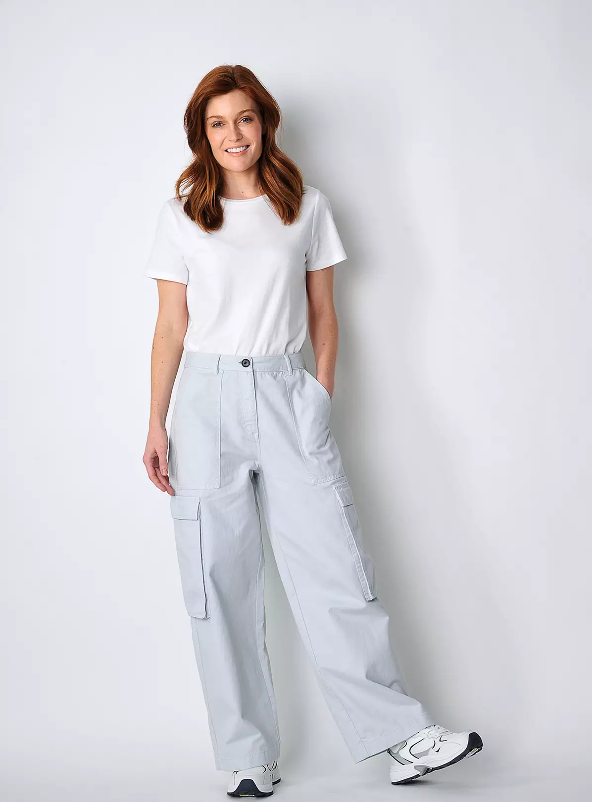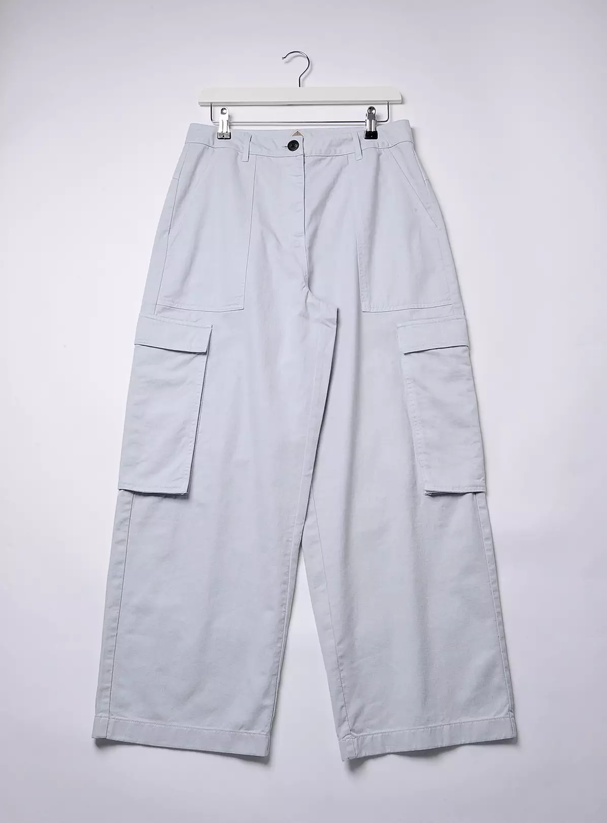 Embrace this season’s utilitarian trend with our cargo trousers. Crafted in heavy cotton drill fabric, they have been laundered and garment dyed to achieve this authentic casual feel. Featuring straight wide leg, signature side pockets and functional front and back pockets. High waist adds a feminine touch. wear them with a loose sweat for an ultimate casual look or tuck a top in for a more elevated look.Super versatile. These ones come in a soft grey hue, that pairs well with any colour top.