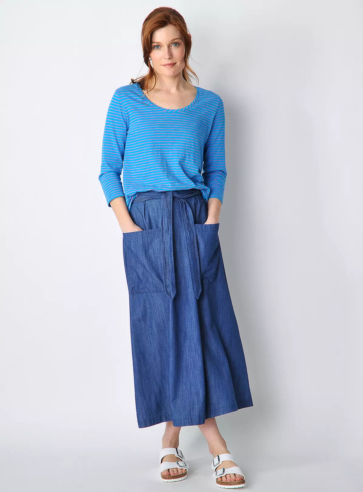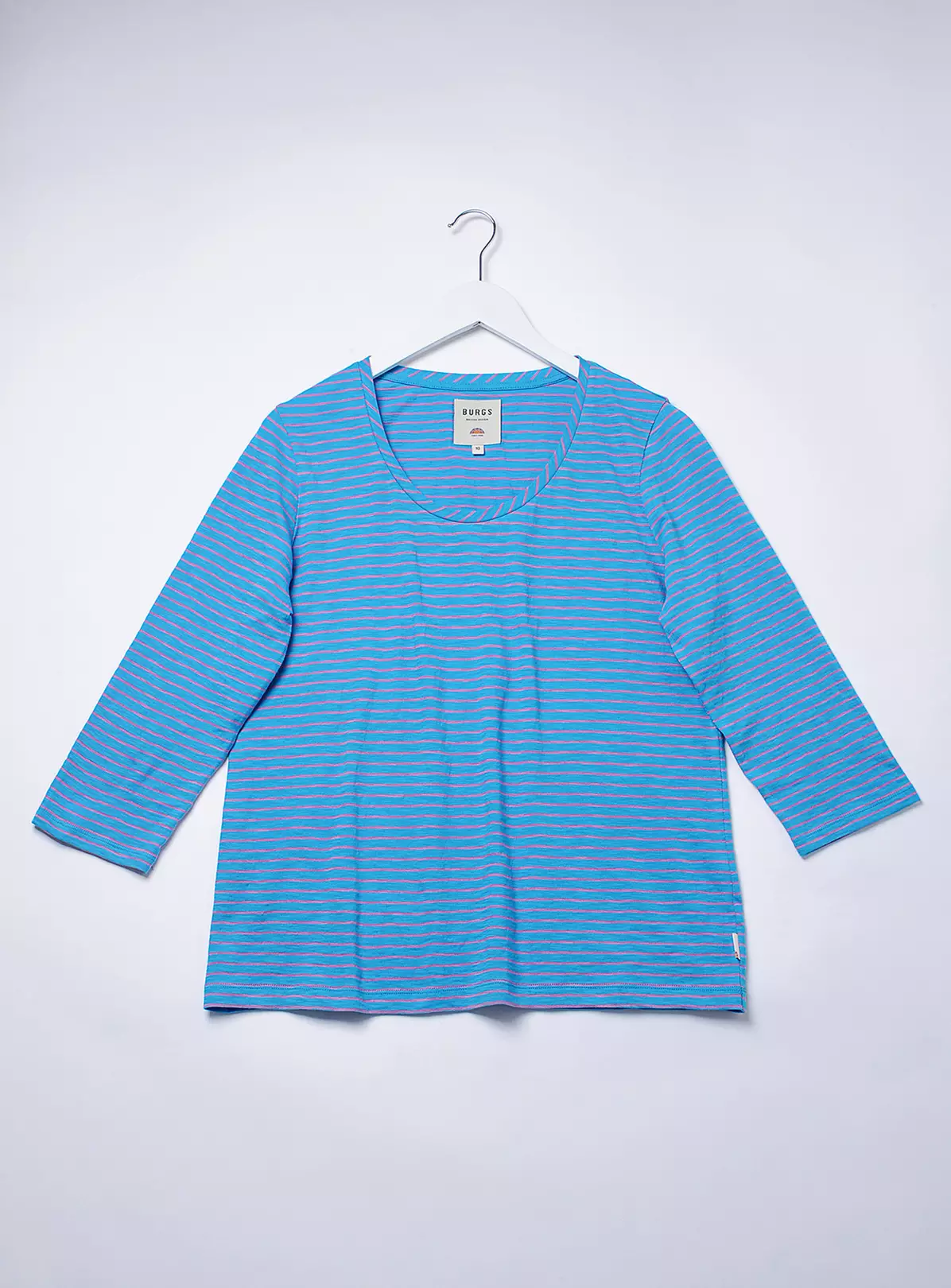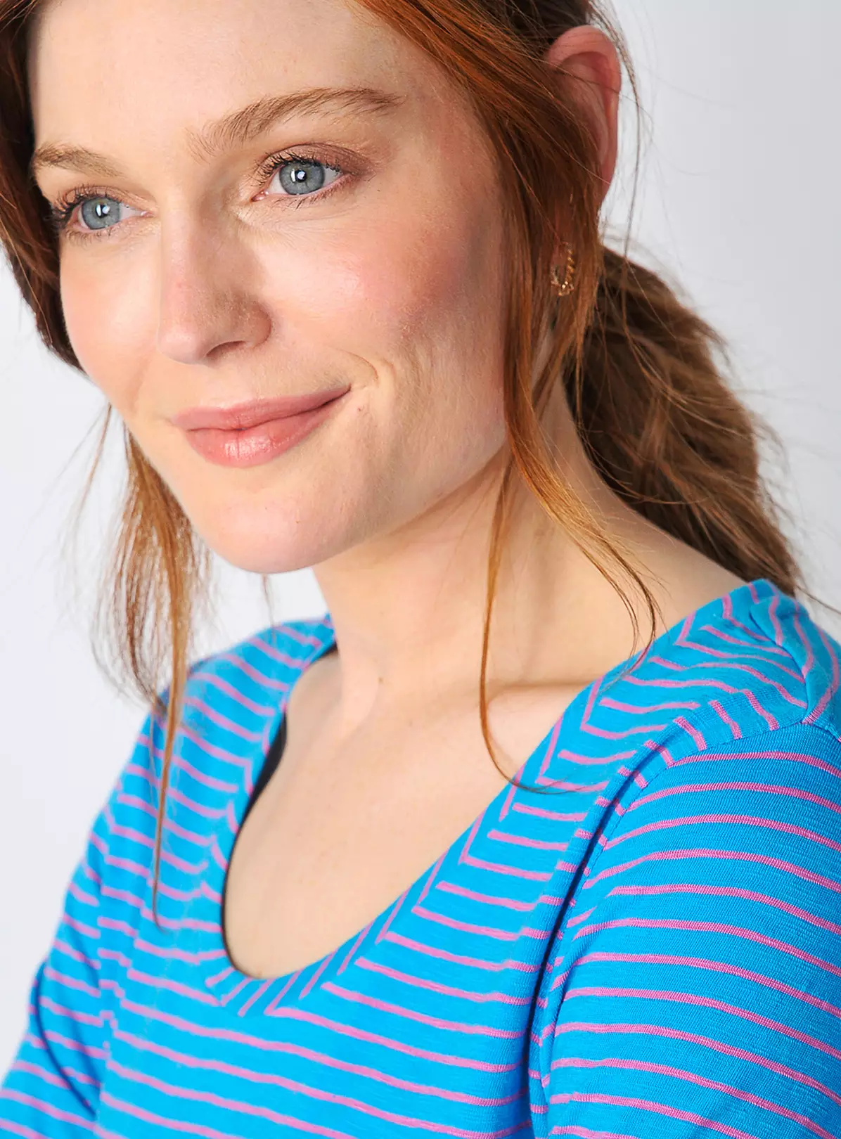 Truscott is our update on a classic 3/4 sleeve yarn dye stripe tee. Crafted in our 100% responsibly sourced single jersey, this style has been designed in bright blue with pink stripe going across. Combined with our laundered wash for a soft finish.
