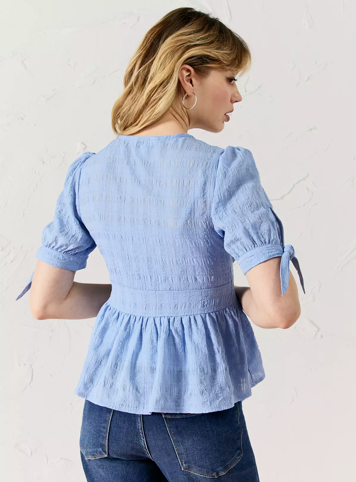 EVERBELLE Tie Sleeve Button Through Peplum Top 18