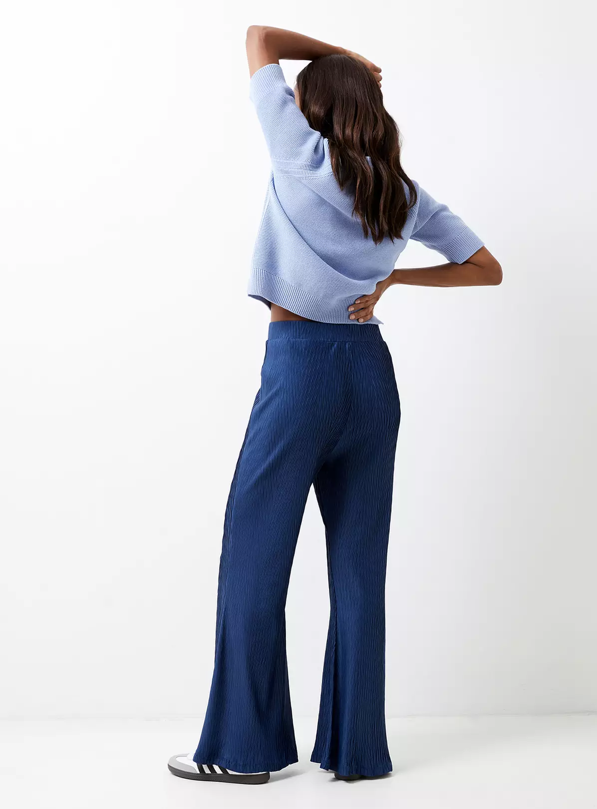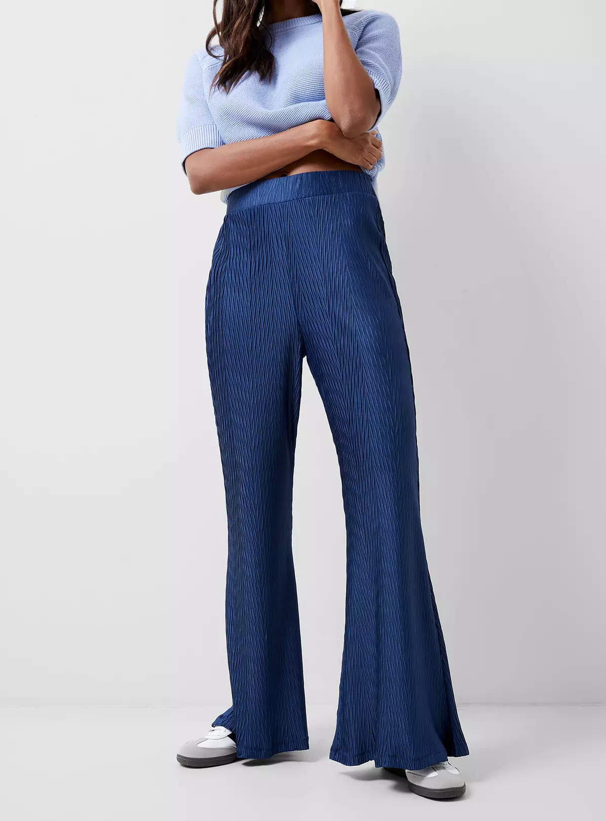 Texture please. Our Scarlette Plisse Trousers tick all the boxes for day to night with a flattering straight leg starring in rich blue plisse whilst hosted by a comfortable elasticated waistband.