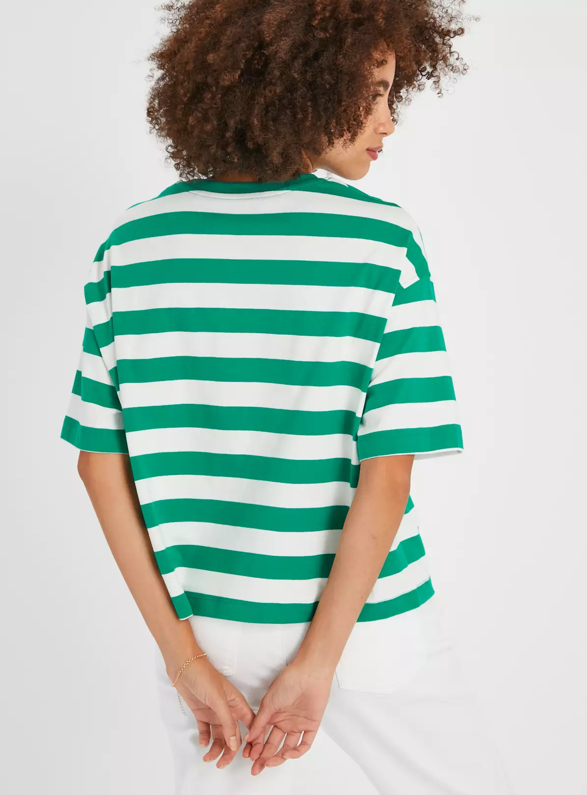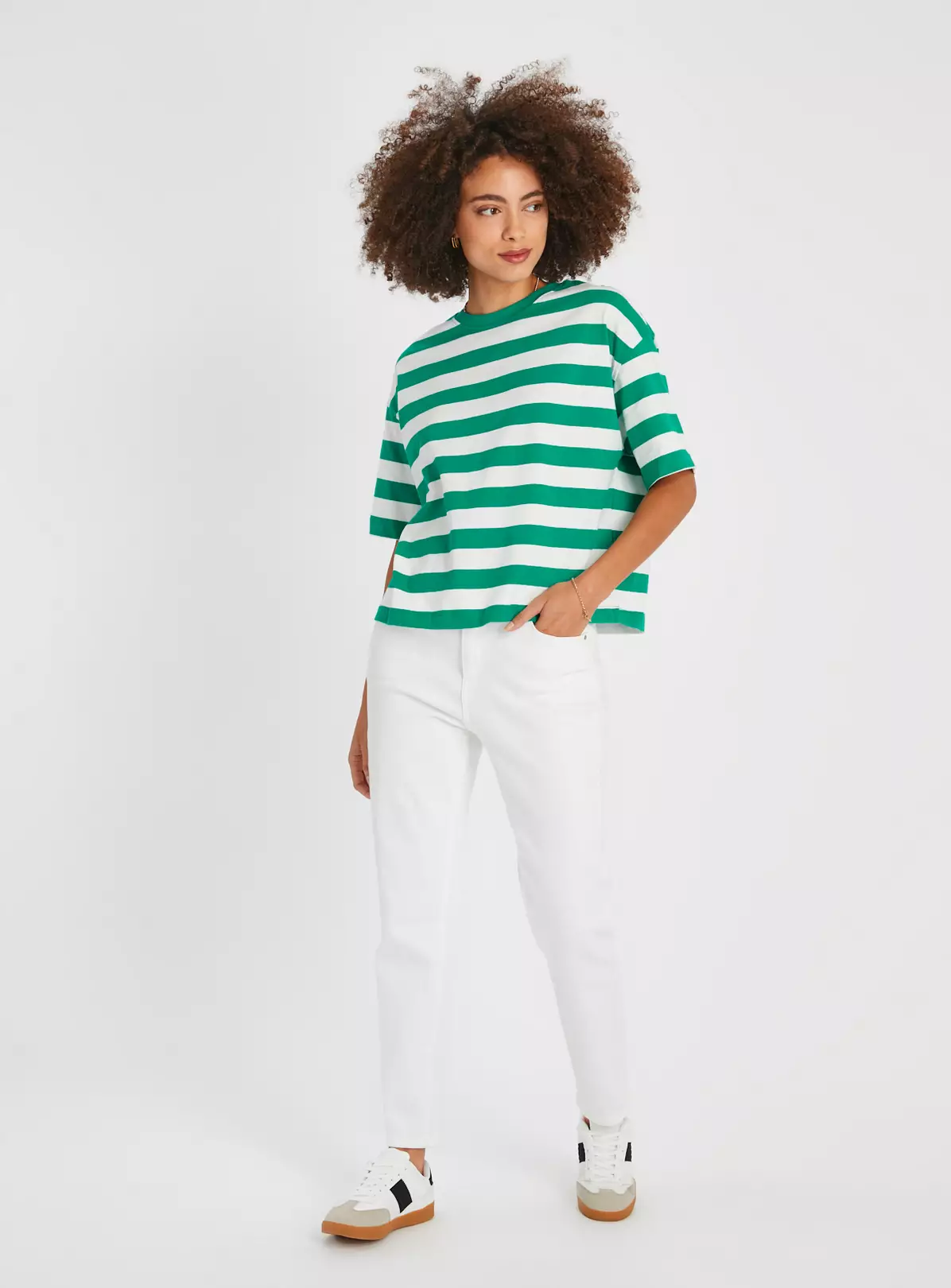Elevated by a wide stripe design, our boxy fit t-shirt is an essential for your collection this season. Crafted from pure cotton, it’ll keep you comfy when you’re out and about. Style it with a pair of white jeans for a laidback look.
