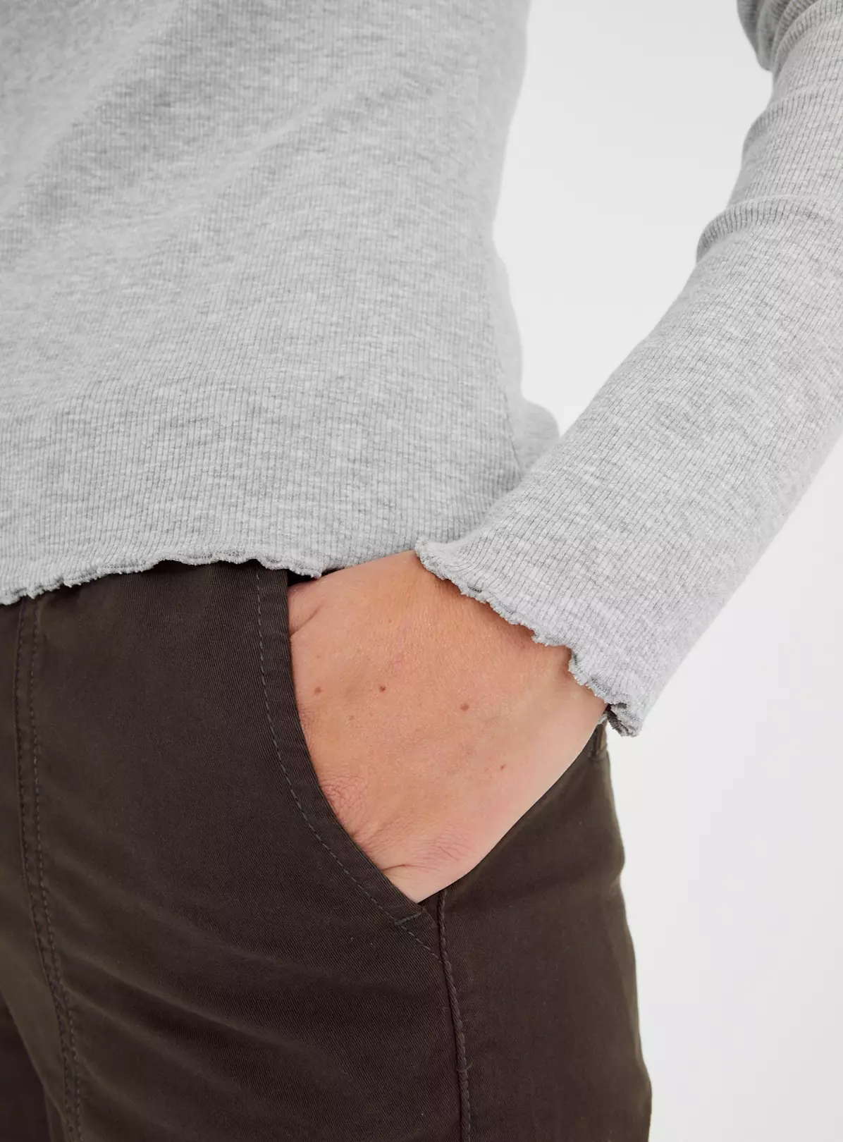 Elevated by a pretty lettuce trim, our grey marl top is a great addition to your winter wardrobe! Crafted from a cotton rich blend, it’ll keep you comfy all day long. Team with dark denim jeans for a laidback look.