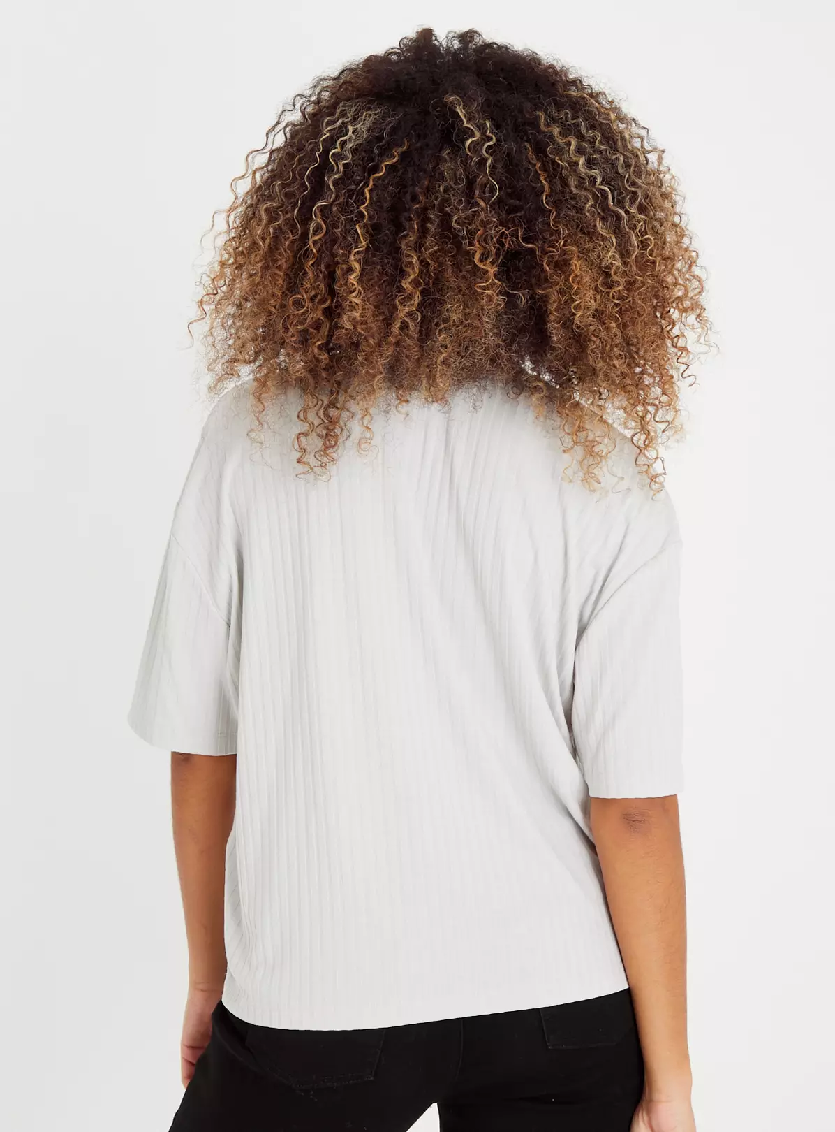 Featuring a flattering boxy fit and a wide ribbed design, our grey t-shirt is a staple for your casualwear wardrobe. Team with denim jeans and trainers for an effortlessly cool look.