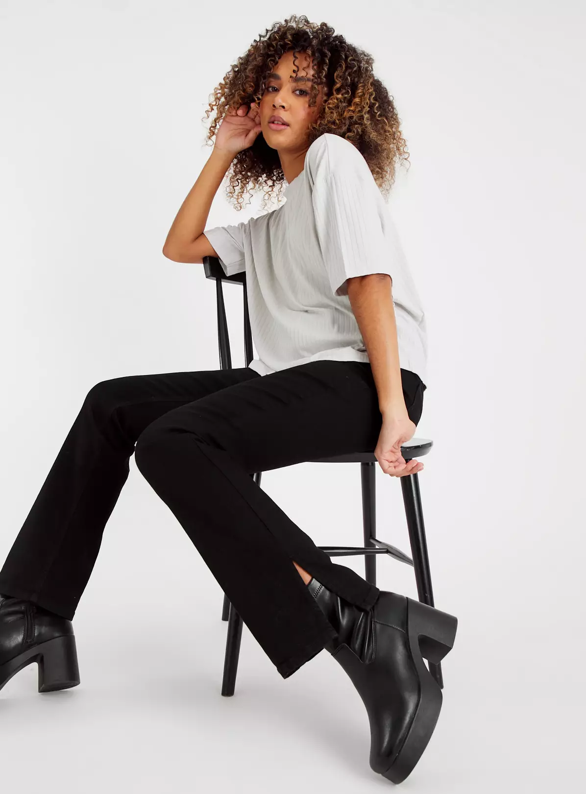 Featuring a flattering boxy fit and a wide ribbed design, our grey t-shirt is a staple for your casualwear wardrobe. Team with denim jeans and trainers for an effortlessly cool look.