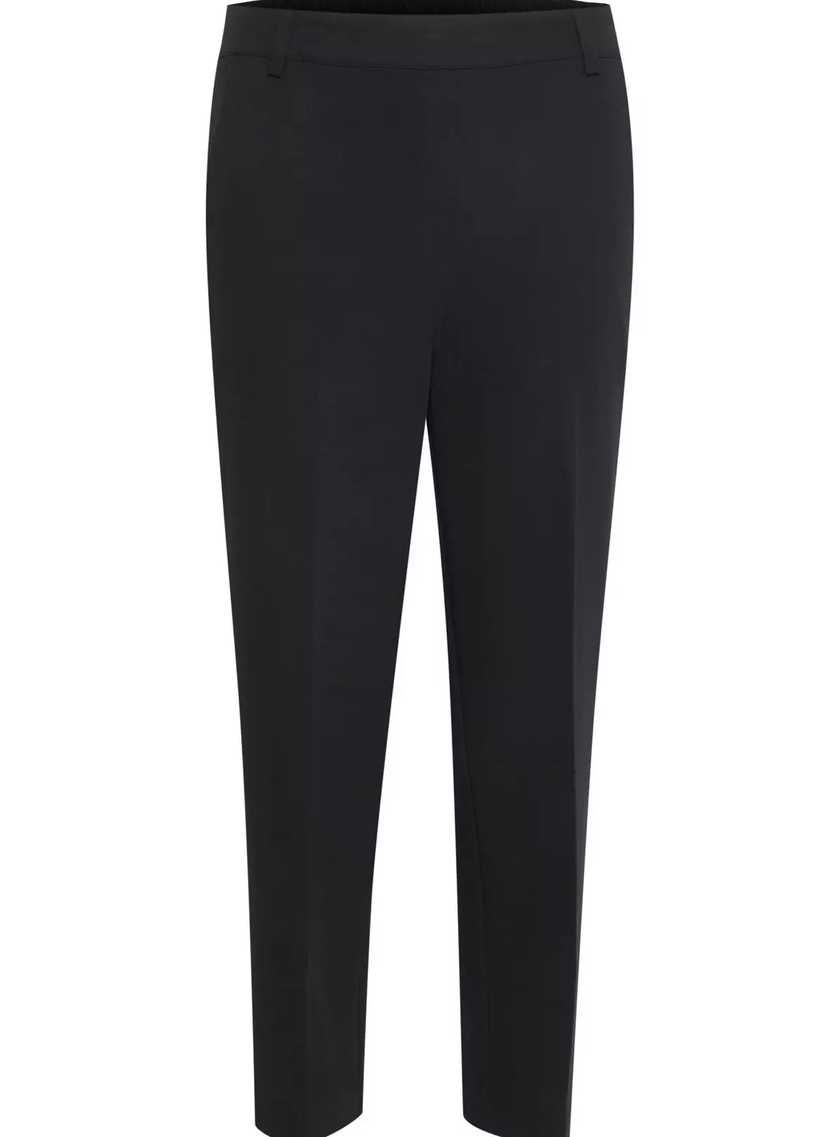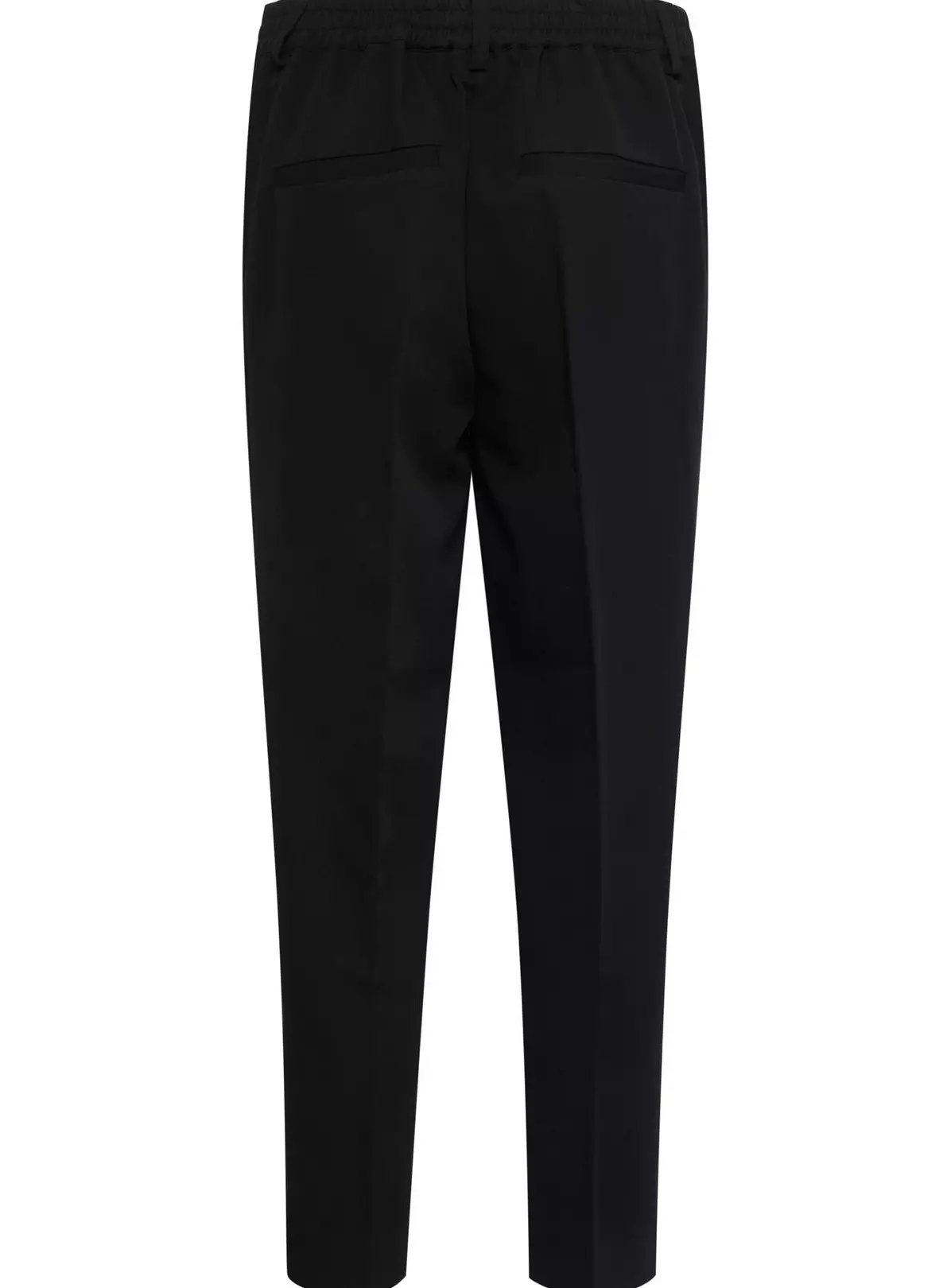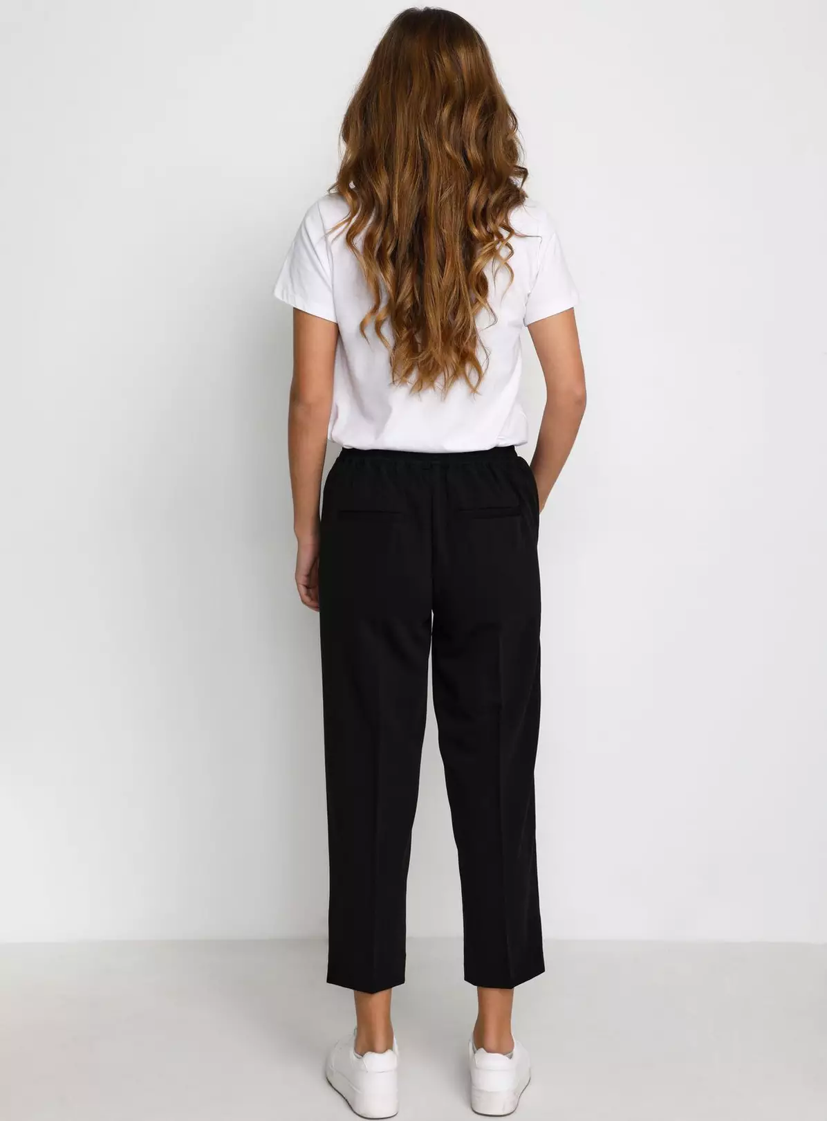 Elegant suit trousers with elasticated waist, mid-rise, mock back pockets, pleats perfect for work or daily wear. Regular fit.