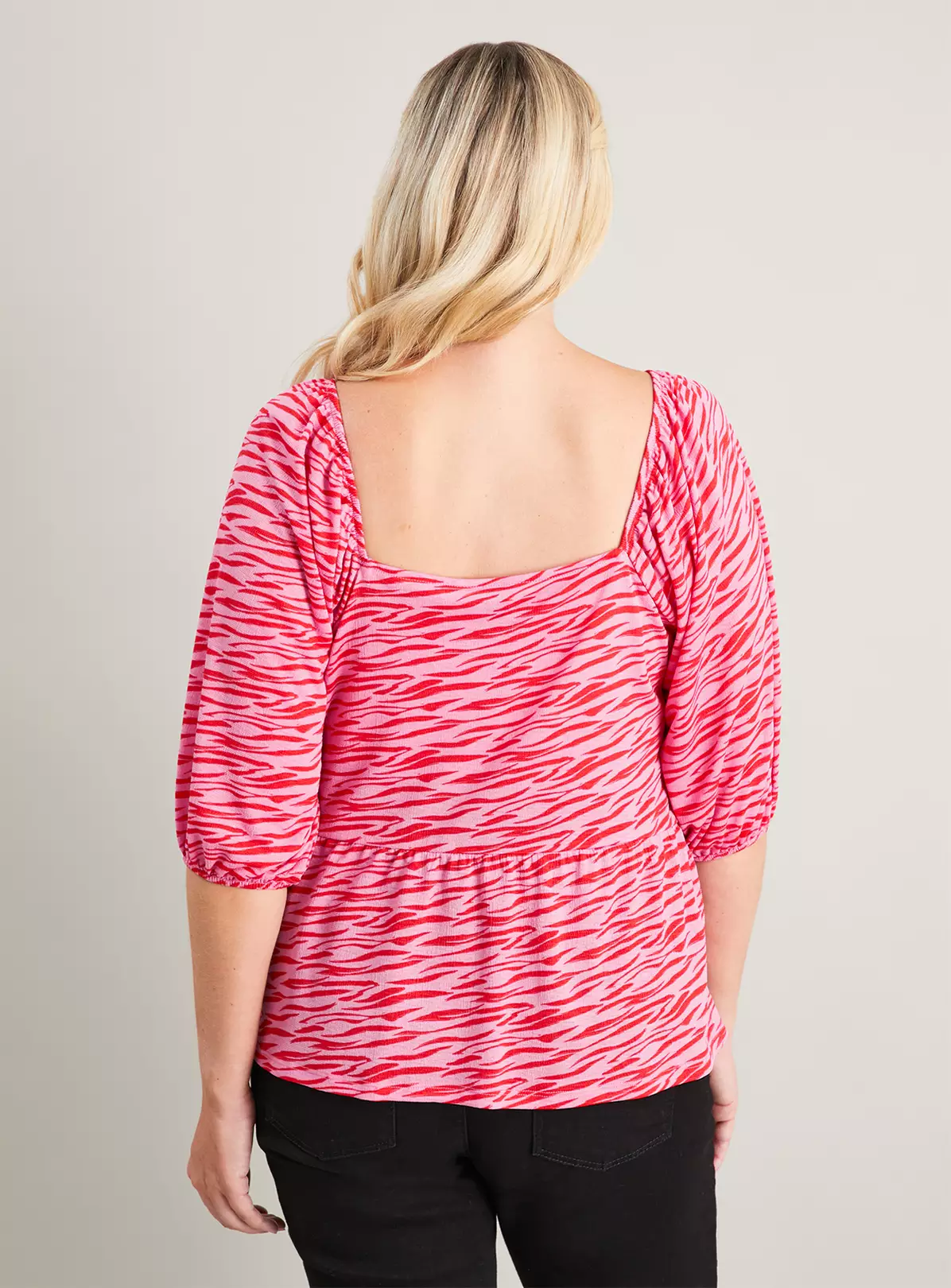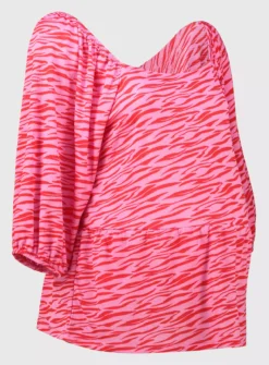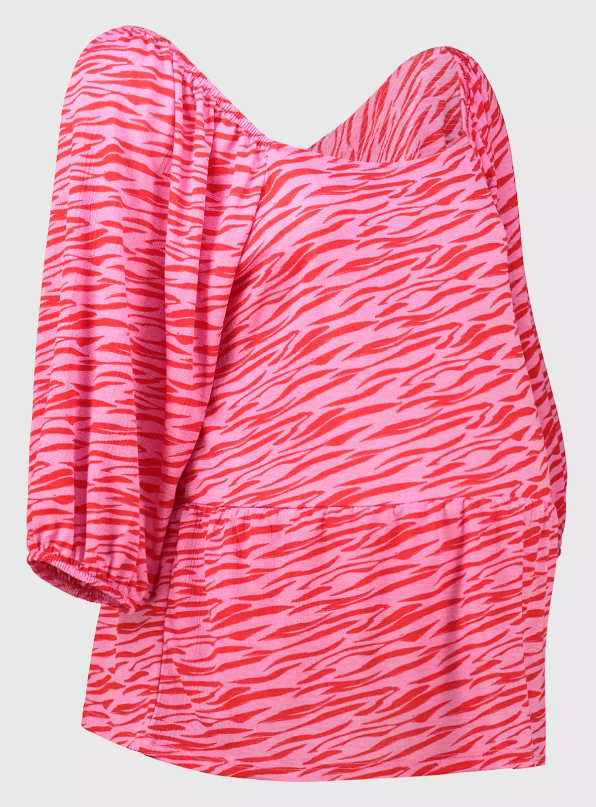 Say hello to your new go-to top for sunny days! Designed with fabulous weather in mind, this flattering peplum top has half sleeves and a retro-inspired square neckline and back. In a funky pink and red zebra print, accessorise with shorts, a pair of oversized shades and a cute sun hat. The best bit? You can wear it off the shoulder too for added versatility. From the Tu Maternity Collection.