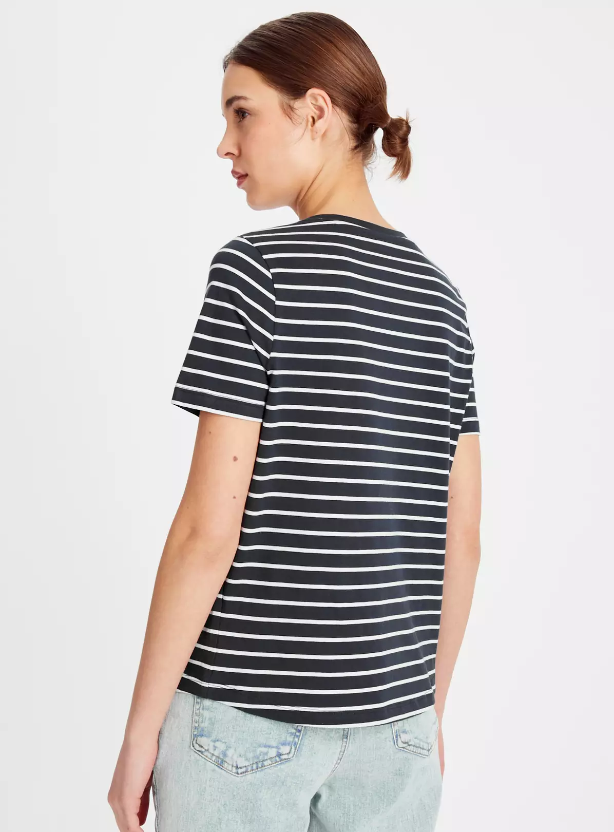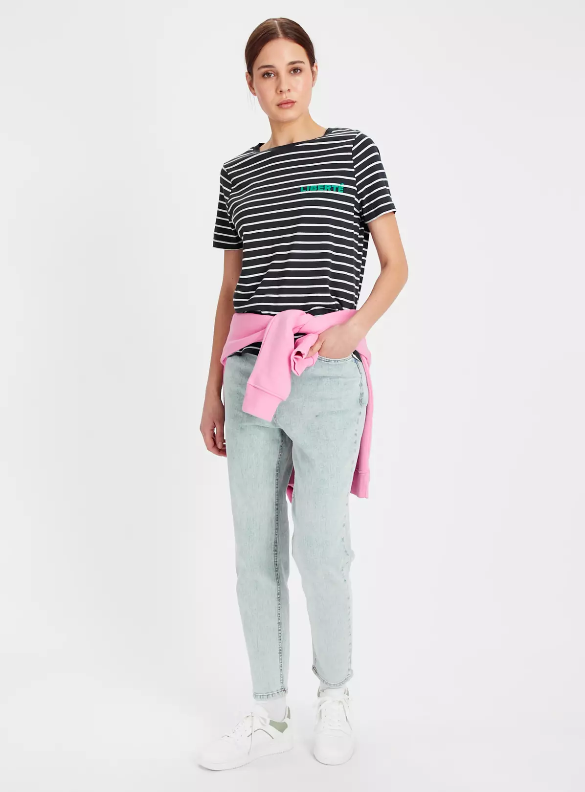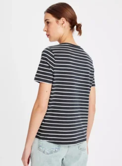 Jump on the seasonal stripes trend with our navy stripe top. Elevated by a ‘Libertè’ slogan to the front, it’s the perfect tee for everyday wear. Team it with denim jeans and trainers for a laidback look.