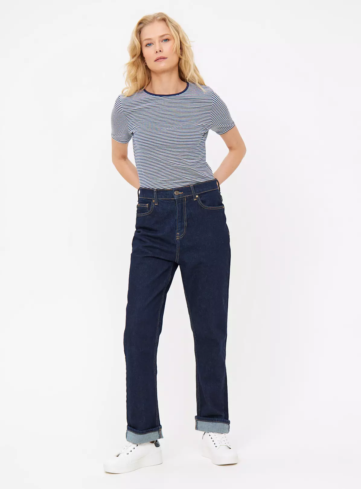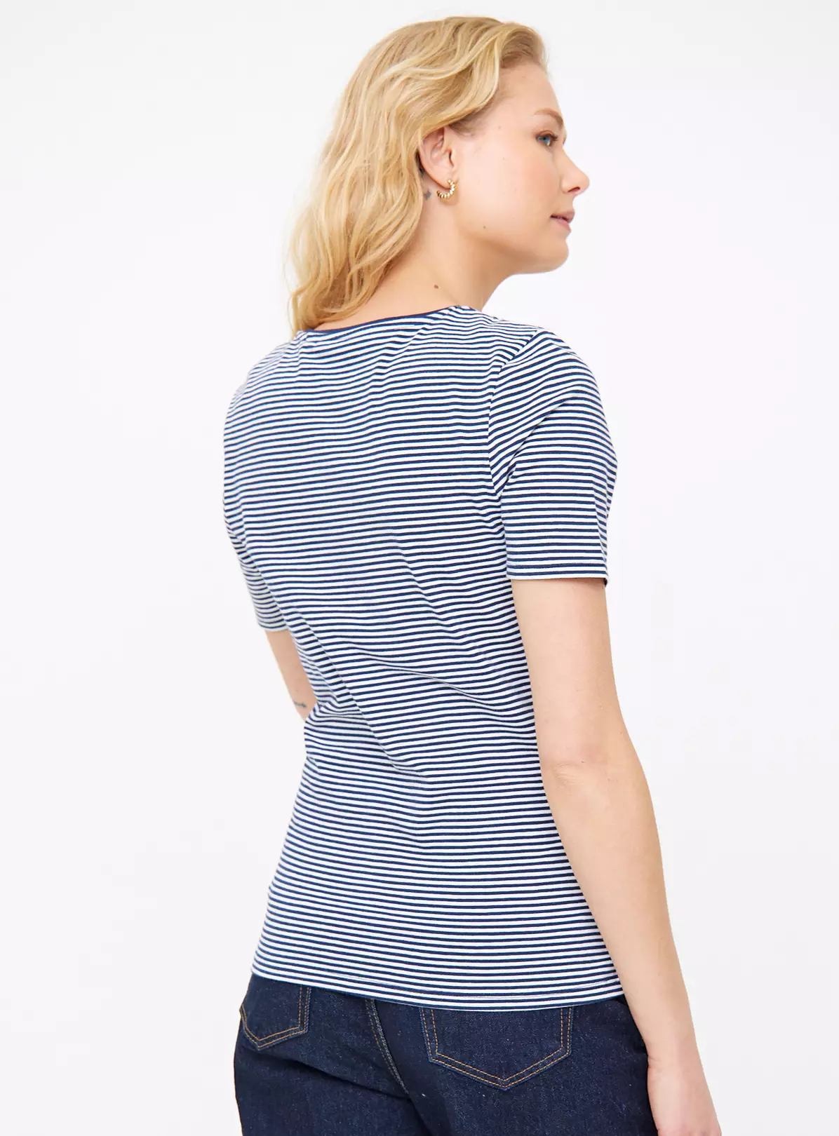 Go all nautical on us with this slim fit navy and white t-shirt. Perfect with jeans and trainers for a laid back look. It’s pure cotton and is bound to help you spring into the next season.