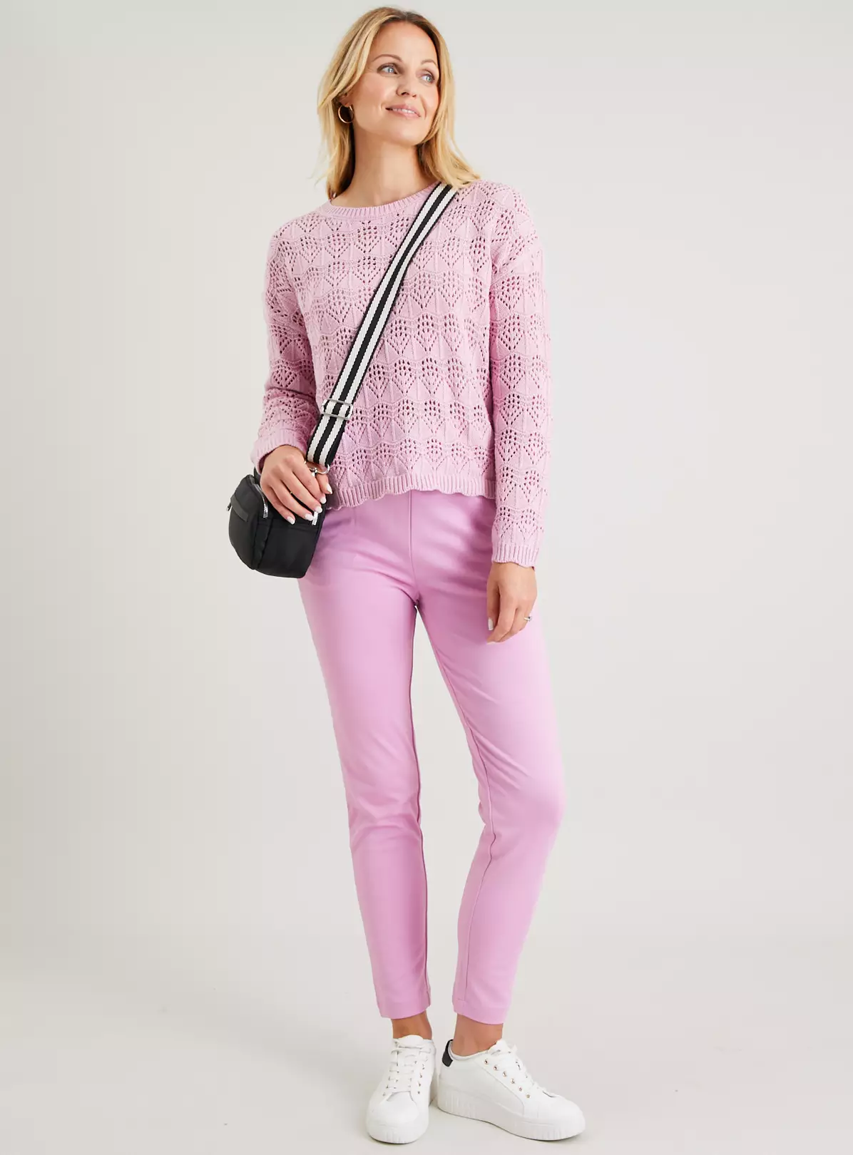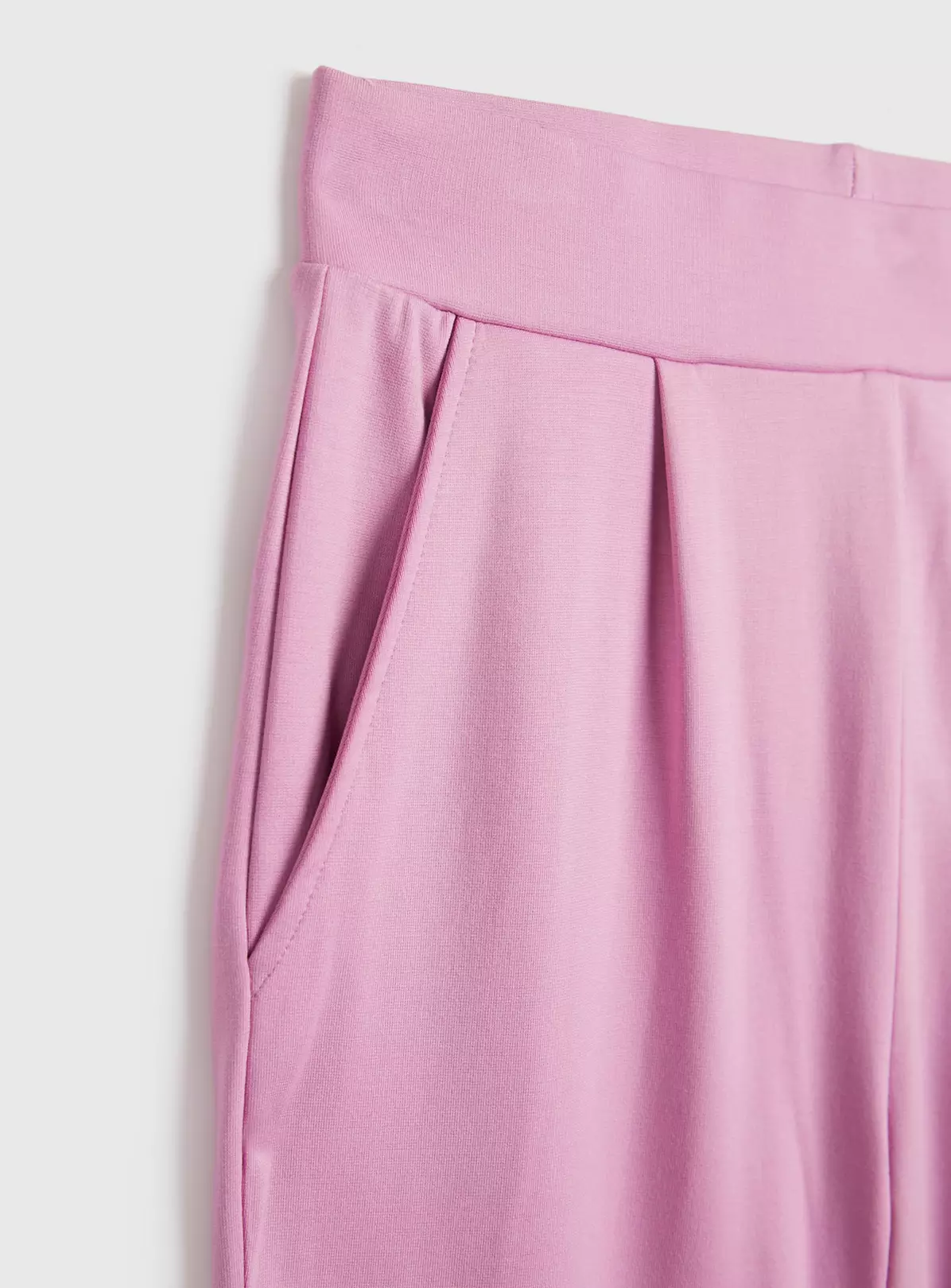 Stay comfy and stylish in these pink tailored ponte trousers. With their elasticated waistband and side pockets, they’re perfect for a relaxed day. Pair with a pair of fresh white trainers for an effortlessly cool look!