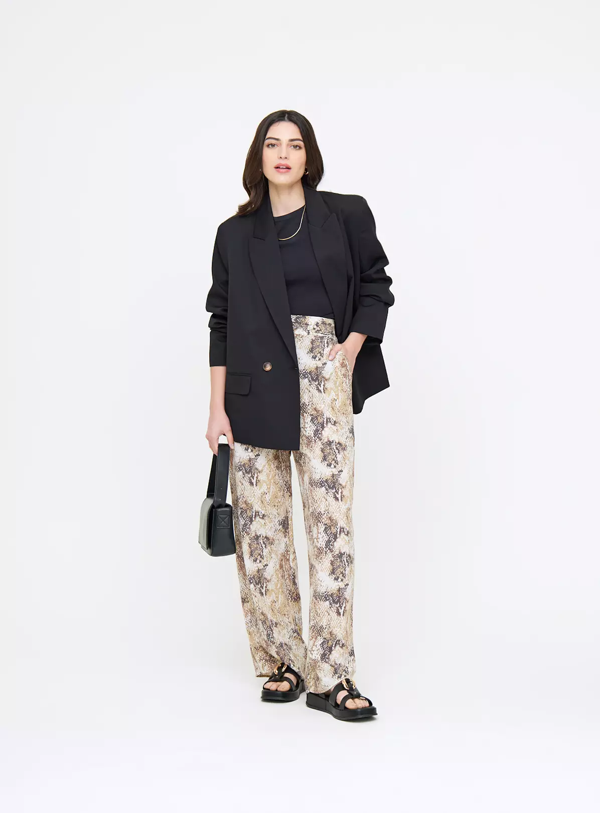 Elevate your look with our snake print trousers. In a staple wide leg fit, they’re beautifully designed to flatter your figure. Style with a black t-shirt and let the print do the talking!