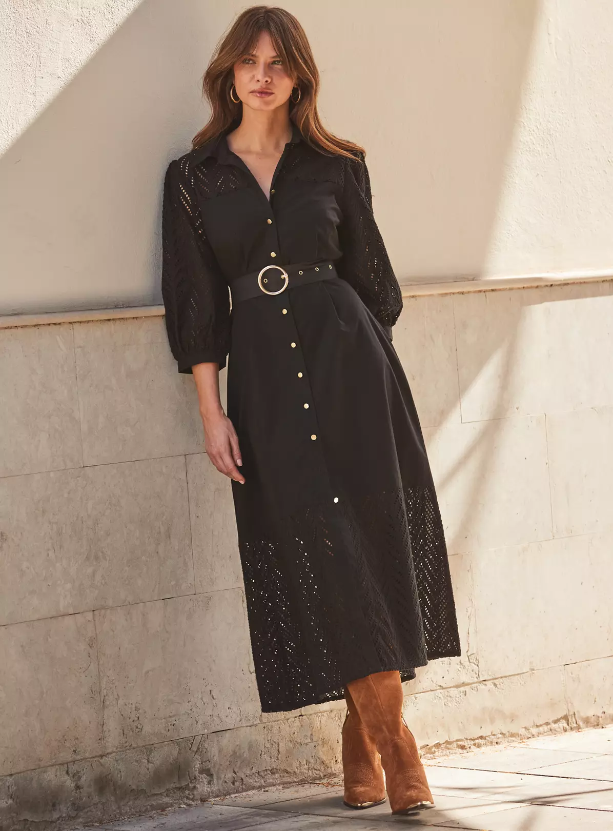 SOSANDAR Black Broderie Detail Midi Shirt Dress 16