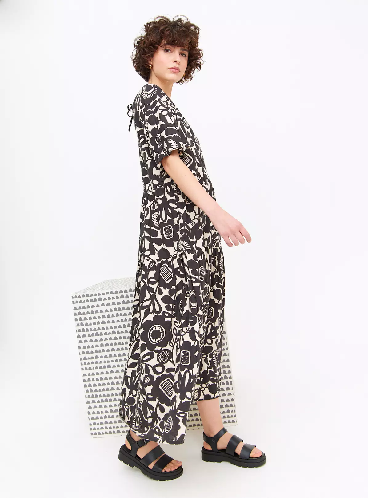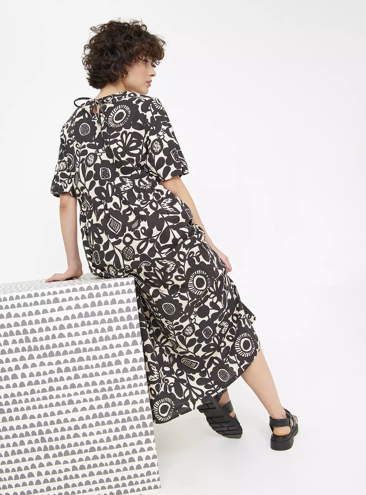 Have a monochrome moment in our Kukkia floral print dress. In a flattering midaxi length, it has short sleeves and comes in a relaxed fit. Style it with sandals for a staple spring look.